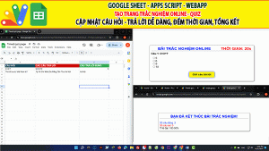 Google sheet apps script Webapp Trang trac nghiem quiz, cập nhật câu hoi trả loi, timer, tổng ket giaoanlink 9 Lượt xem