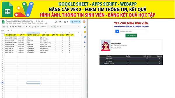 - Google sheet Webapp | Bản nâng cấp Tìm và Load Thông tin sinh viên có Hình ảnh và Bảng kết quả thi