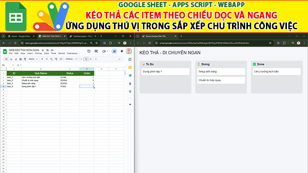Appscript Webapp | Kéo thả các Items theo 2 chiều Dọc – Ngang, Ứng dụng sắp xếp chu trình công việc