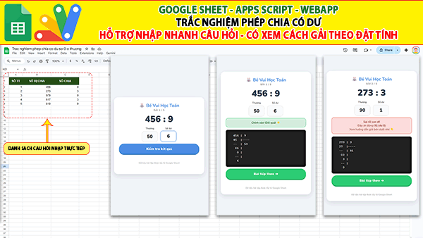 Read MoreGoogle sheet webapp Bé Vui Học Toán – Ứng dụng Luyện Phép Chia Trực Quan Cho Học Sinh Lớp 3