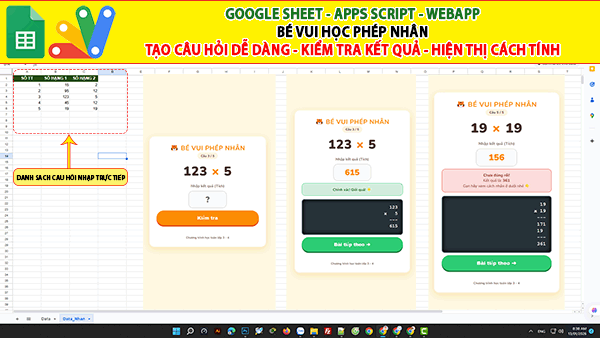 Google sheet, apps script, webapp “Bé Vui Phép Nhân” – Công Cụ Luyện Toán Trực Quan Cho Học Sinh Tiểu